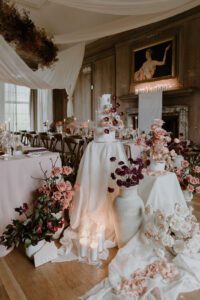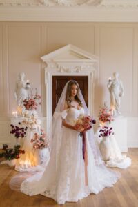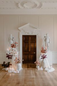 For this photoshoot, the vision was clear: to transform the iconic Findon House into a vast floral fantasy, showcasing the possibilities available to couples getting married at this stunning venue. With its grand architecture and soft, neutral interiors, Findon House is the perfect canvas for a dramatic yet romantic wedding design.