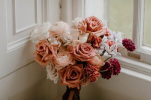 When designing for a venue like Findon House, we wanted the floral story to both contrast and complement the existing interiors. To achieve this, we selected a colour palette that oozed drama and romance, while maintaining elegance. Deep mauvey pinks, rich plums, and vibrant coral tones contrasted beautifully with crisp ivory, giving the flowers a bold, impactful presence in the space.