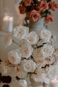 When designing for a space like The Ballroom, we always take into account the details, space, and vibe that our couples want to create. It’s not just about the flowers themselves but about how they interact with the room, the people, and the overall experience. We focus on creating an engaging, stylish floral design that’s not only visually stunning but also adds to the atmosphere, making guests feel fully immersed in the celebration.