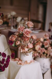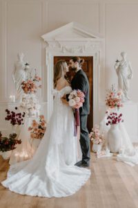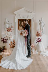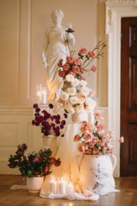 Wedding suppliers love to hold styled shoots because it allows us to bring new ideas and creative visions to life, offering couples a glimpse into the realm of floral possibilities for their own dream day. These shoots provide a playground for trying innovative designs and bold concepts that inspire couples to think outside the box. Styled shoots also give us the opportunity to get to know wedding venues on a more intimate level, allowing us to understand their unique features and flow, so we can deliver the best possible service to couples choosing that venue for their special day.