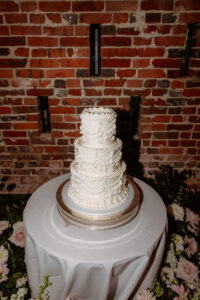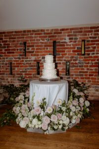 For the guest tables, we opted for lush, abundant footed bowls filled with flowers that echoed the ceremony and top table designs. These florals helped to carry the floral story across the entire reception space while balancing the denser, more abundant design moments at the cake table and top table. The overall effect was one of timeless elegance, with a modern, intentional design that tied the whole day together perfectly.