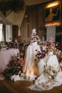 This Somerley House wedding is a perfect example of how we can transform your ceremony flowers into a decadent dessert display.